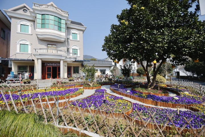 他家的庭院,用篱笆笆围着,培育着蝴蝶兰、龙井茶、香泡等植物。花圃的硬化是客岁作念的,还有效木桩子砌出的元宝和铜钱体式的花池,林世寿每天起床就给花池浇水、拔杂草。