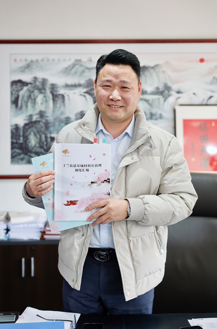 (俞开国展示皋城村屯子惩办轨制汇编,最新版囊括了51条轨制)
