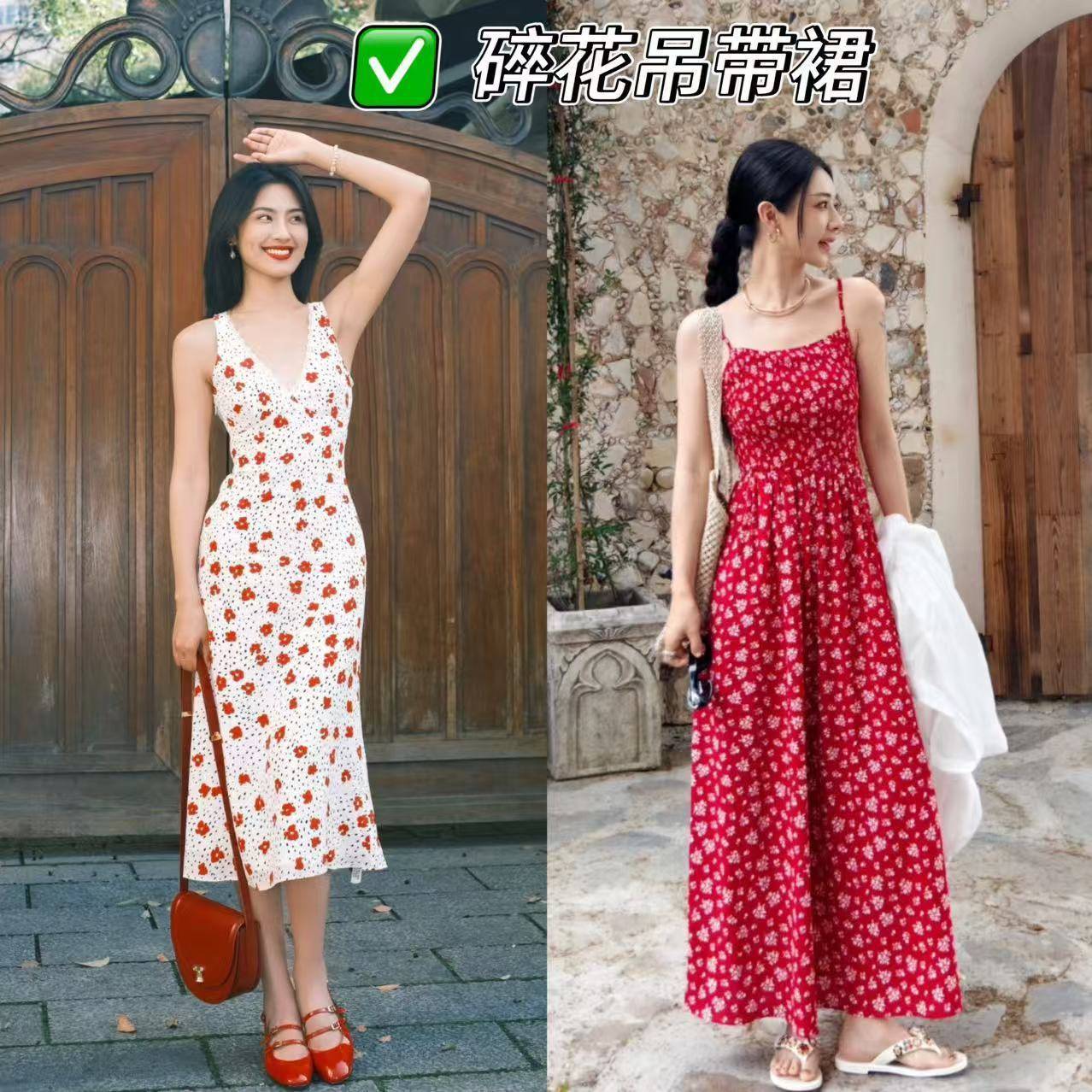 穿搭示范:白色为底色,玫红色碎花的点缀,上身显白,何况自带的收腰运筹帷幄相等修饰肉体;红色为底色,白色碎花,飘溢着守旧又文静的氛围感。