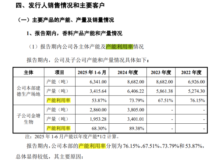 凭据招股书流露,叙述期内,格林生物母公司的产能诓骗率辩别为76.15%、67.51%、73.79%和53.87%,子公司金塘生物2024年投产以来的产能诓骗率辩别为89.38%、68.30%,产能诓骗率不高,主如若合成和精馏工序的全链条产能与仅精馏工序产能核算口径各异导致。