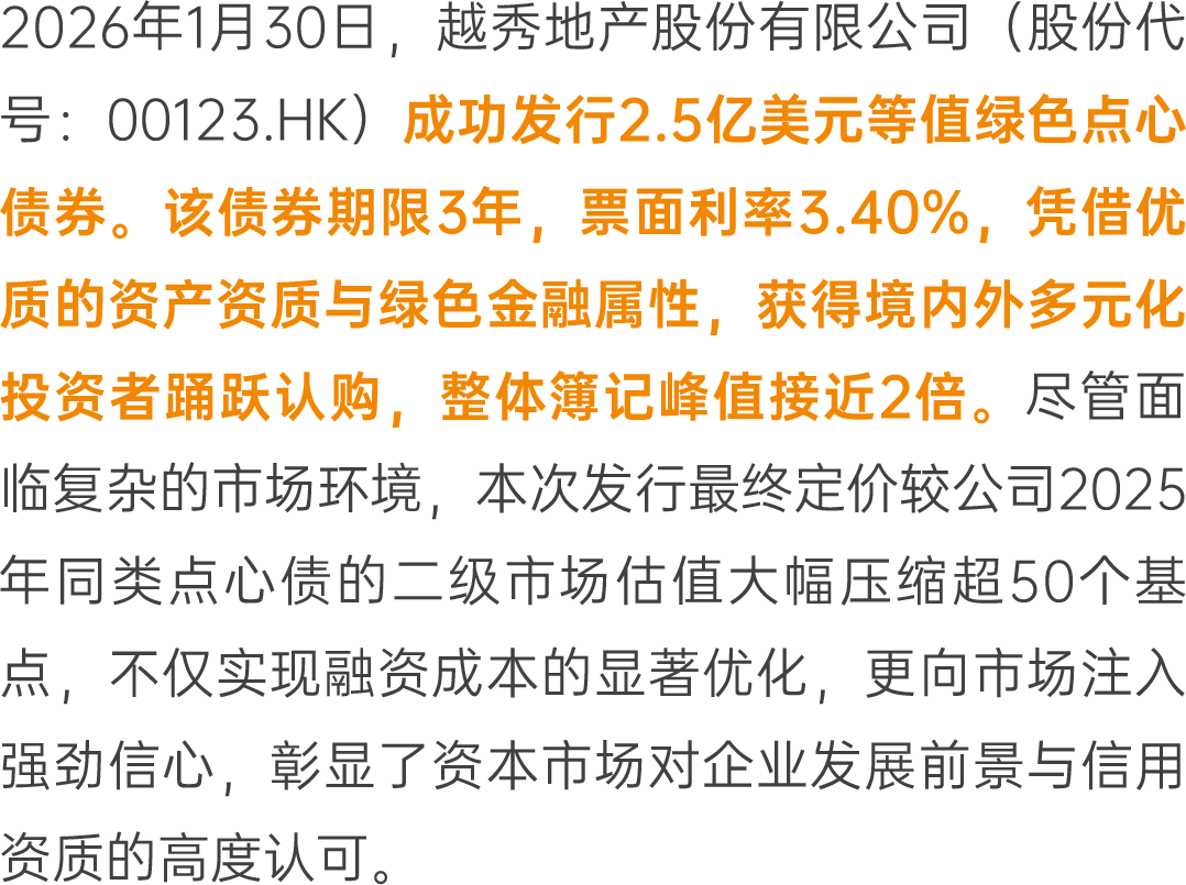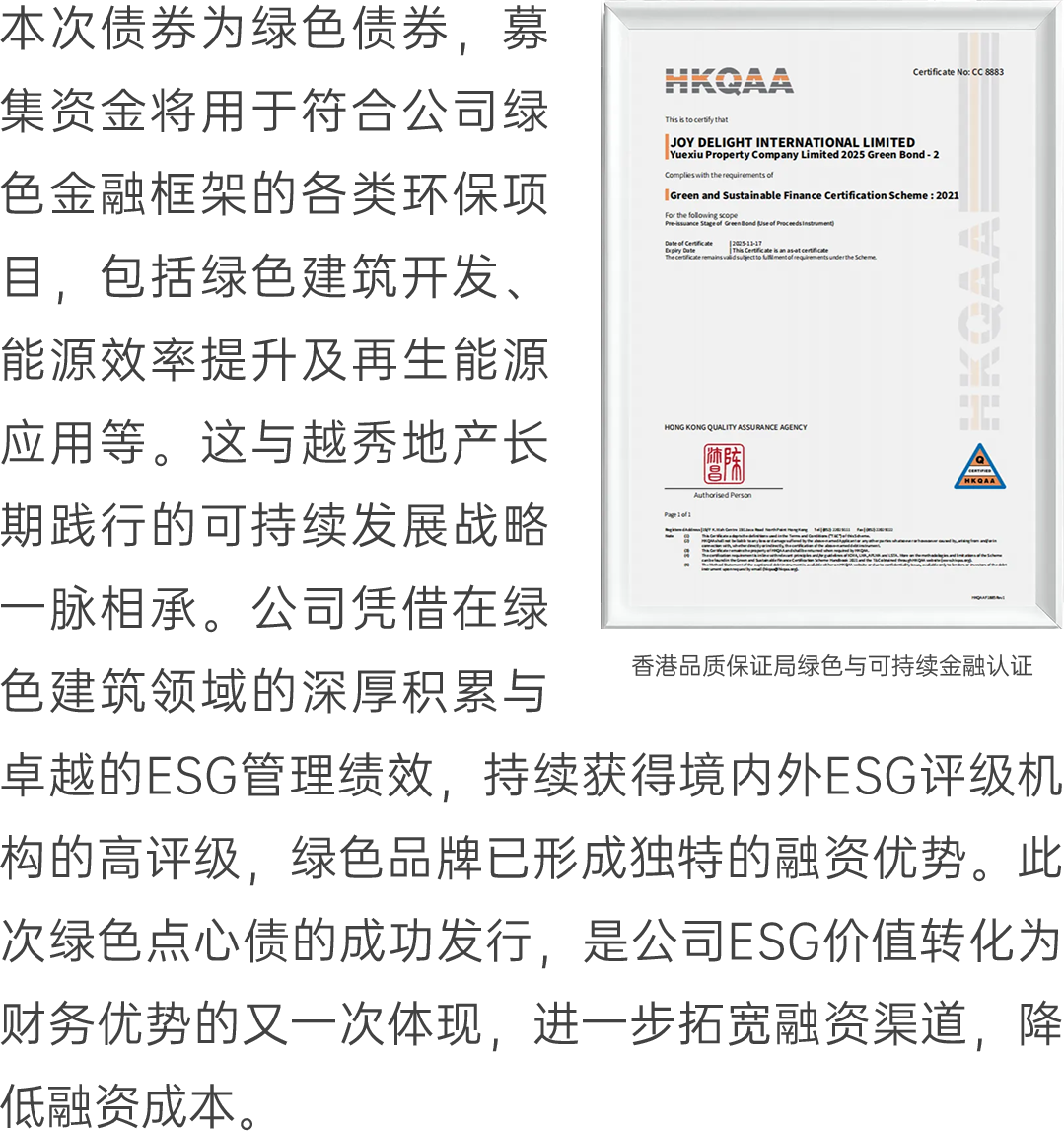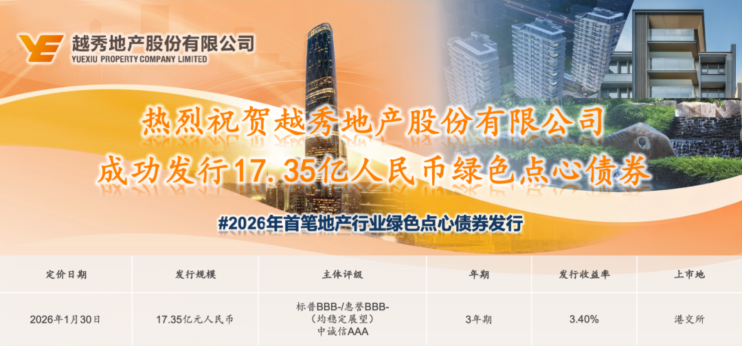 幸运彩 越秀地产见效刊行2.5亿好意思元等值绿色点心债券