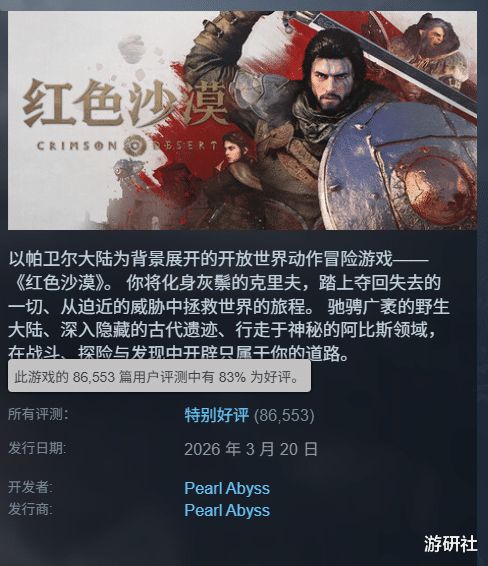 在发售前后的48小时内,《红色沙漠》故事险些就也曾被写好了:3月18日,游戏上市前的宣发预热达到极点时,媒体评判辨禁:77分。第二天游戏上线Steam,评价只得“筹议不一”,开发商Pearl Abyss的股价一度大跌30%。