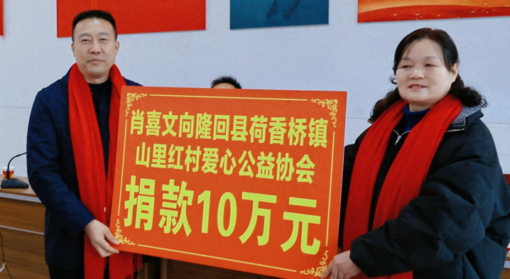 2月13日,隆回县荷香桥镇山里红村爱心公益协会建立五周年庆典现场暖意融融。隆回天马商贸有限公司董事长肖喜文再捐赠10万元现款,这是他卸任村支部布告后链接第五年实施诺言,累计捐赠达66万元。肖喜文顽强示意,将坚捏每年捐10万元、链接捐10年的应许,把公益看成一世的行状作念到底。