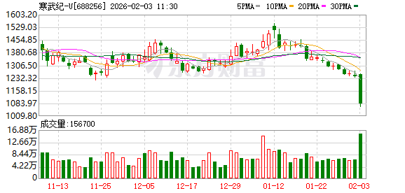 数据宝统计,铁心10:56,寒武纪-U成交额151.89亿元,超150亿元。最新股价下落11.83%,换手率3.16%。上一往改日该股全天成交额为83.58亿元。