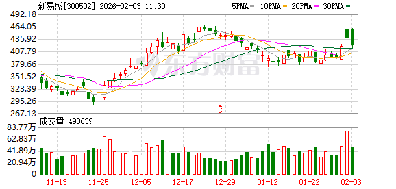 数据宝统计,截止11:03,新易盛成交额200.11亿元,超200亿元。最新股价着落3.26%,换手率5.18%。上一交畴昔该股全天成交额为352.51亿元。(数据宝)