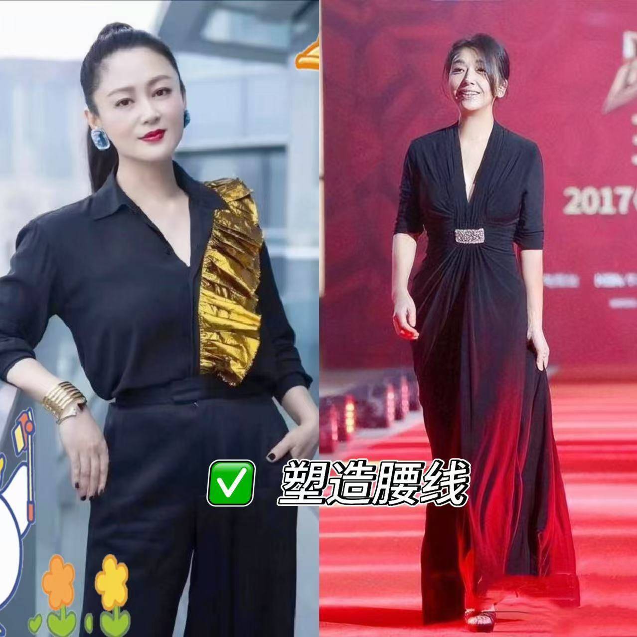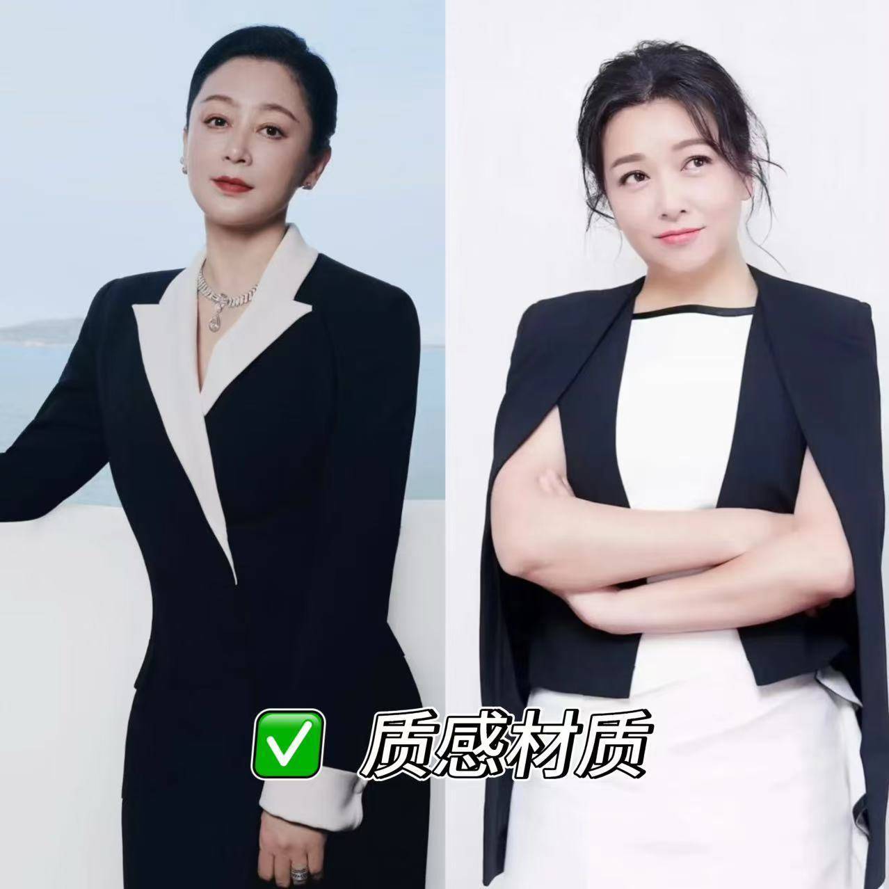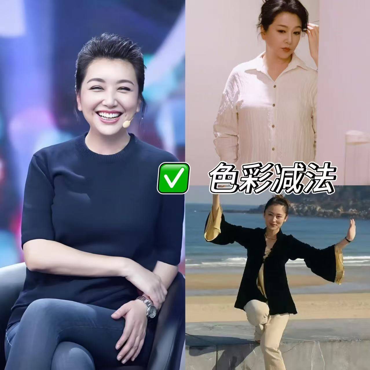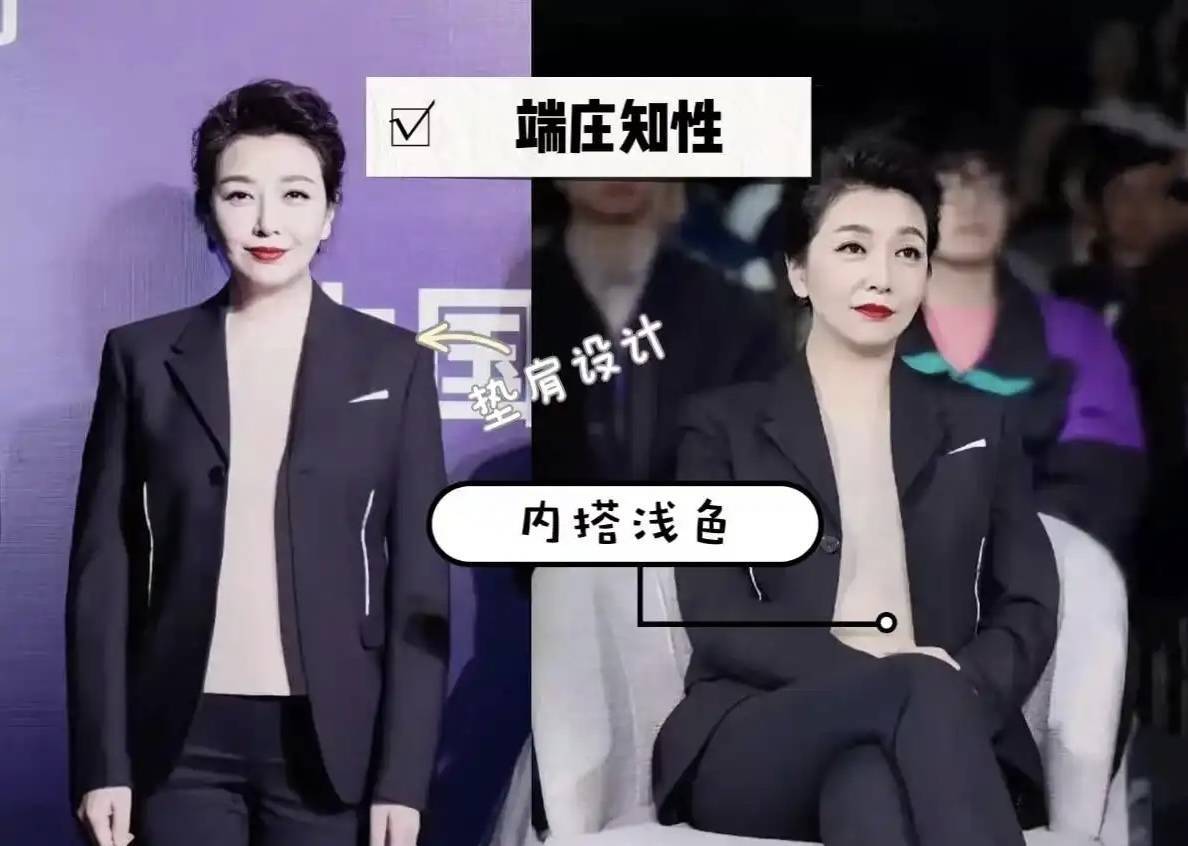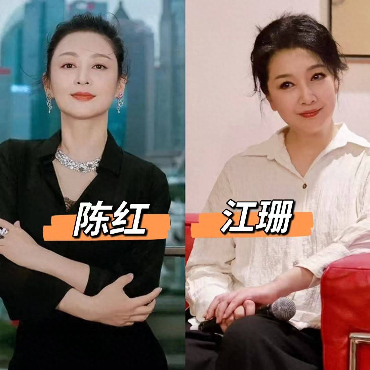 对比陈红和江珊的穿搭,会发现她们诚然作风不同,但都解任着中年女性穿搭的黄金手段,平素姐妹也能径直套用: