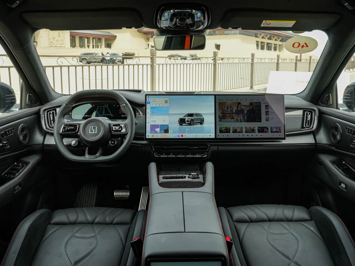 插足车内,内饰弃取 “豪华 + 科技” 环抱式布局,曜影版专属黑橙双色内饰,中控台搭载16 英寸 3.5K OLED 悬浮中控屏 + 13.2 英寸液晶面容,与 44 英寸 AR-HUD 昂首清楚构成三联屏系统,信息清楚昭彰直不雅。三辐平底多功能标的盘弃取真皮包裹,捏感鼓胀,集成触控按键与驾驶辅助为止。怀挡式换挡策划开释中央通谈空间,搭配悬浮式触控面板与无线充电池,操作浅近。座椅为一神色畅通座椅,弃取真皮与 Alcantara 拼接材质,前排缓助加热、透风、推拿功能,包裹性与撑持性出色。后排空间越级,腿部空间超两拳,地板纯平,满载 5 东谈主无压抑感,右侧配备伊姆斯躺椅,资料乘坐酣畅。
